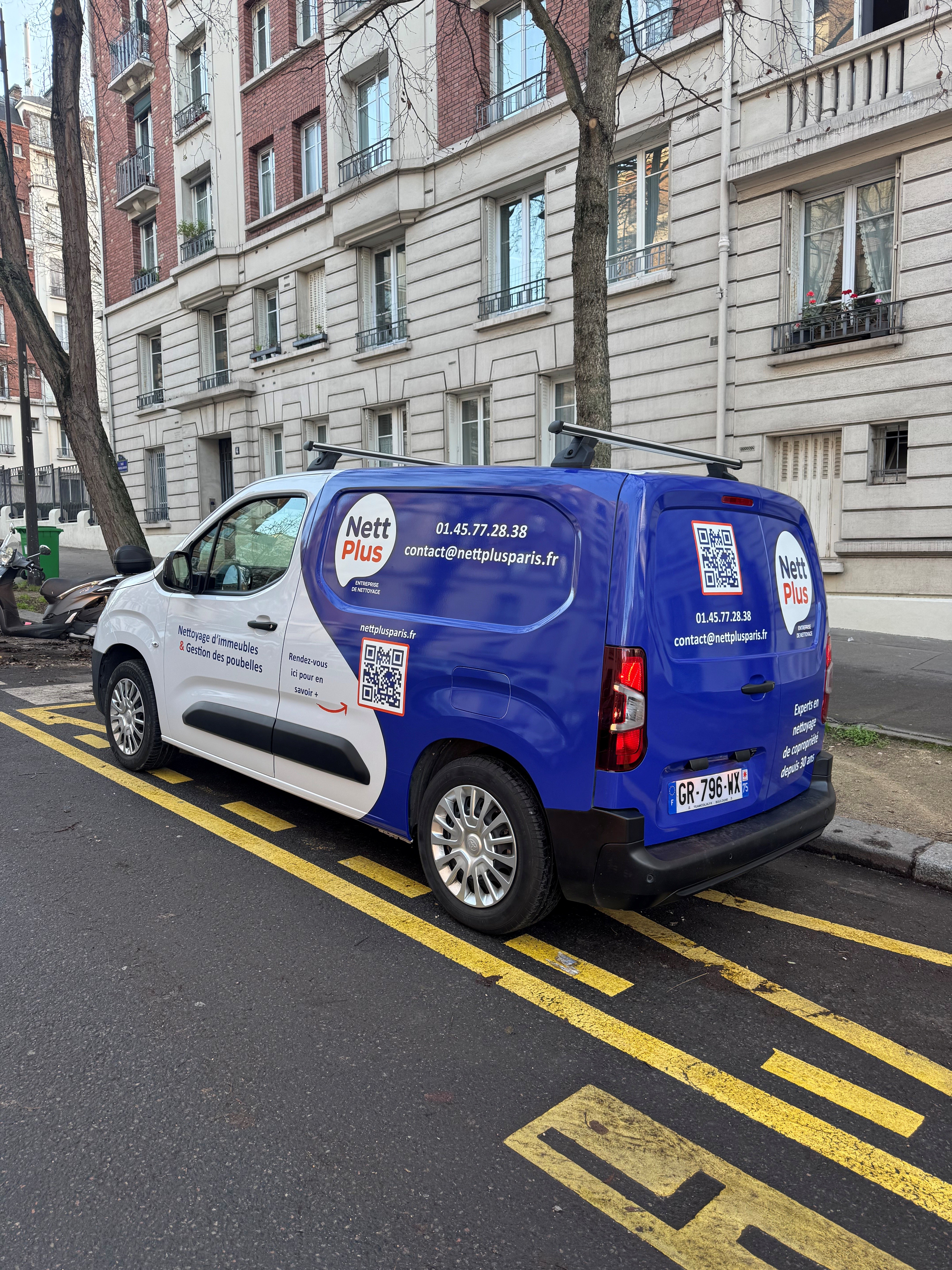 Cette réalisation intègre également un QR code imprimé sur le véhicule, véritable passerelle entre le support physique et le digital. Scannable directement depuis la rue, il facilite la prise de contact et l’accès rapide aux informations en ligne.